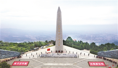 七一期间,阳泉市部分新党员在百团大战纪念碑前集体宣誓。