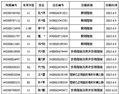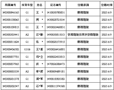 根据《机动车驾驶证申领和使用规定》(公安部162号令)第七十九条第一款第六项之规定,现公布以下机动车驾驶人驾驶证被注销。