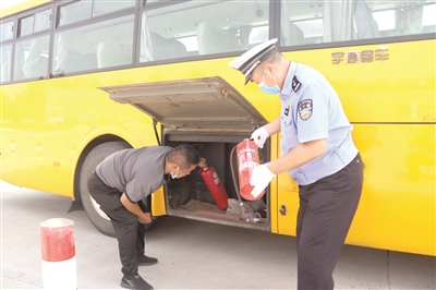 会后,民警对校车驾驶人资质、校车标牌、运行时间、行驶路线等基本情况进行逐一核对,重点严查校车手续是否齐全、是否符合安全运行条件、是否取得校车许可、校车年检情况以及车辆的维护保养等情况;逐车认真查看了逃生锤、灭火器以及安全带等安全设备的有效情况。民警要求管理人员严格落实校车日常安全运行管理措施、督促学校要严格落实交通安全责任,并叮嘱驾驶人要谨慎驾驶,时刻把安全放在第一位,做到“病”车不上路,上路不违法,切实增强法律意识、安全意识、责任意识,保障学生平安上下学。