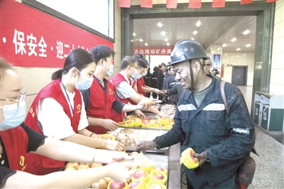 在中秋佳节来临之际,华阳一矿团委组织团员、青年在井口开展了慰问活动,为广大职工送上诚挚的问候和美好的祝福。贺海摄
