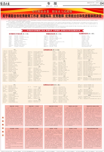 关于表彰全市优秀教育工作者、师德标兵、优秀教师、优秀班主任和先进集体的决定