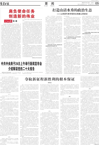 中共中央将于24日上午举行新闻发布会 介绍解读党的二十大报告