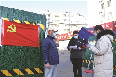 市委组织部《关于市直单位党员干部职工到社区报到支援疫情防控的通知》发出后,各单位迅速贯彻落实《通知》精神,符合条件的党员干部职工主动报名,积极投身所在社区、小区,配合社区工作人员开展秩序维护、消毒消杀等疫情防控工作。图为日前,城区南山路街道南庄路社区居住的党员在和义居小区卡口值守。刘胜摄