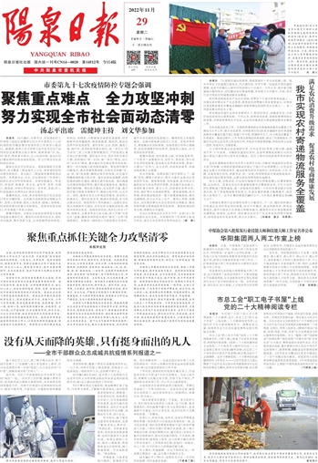阳泉日报 要闻 01 2022-11-291 2022年11月29日 星期二