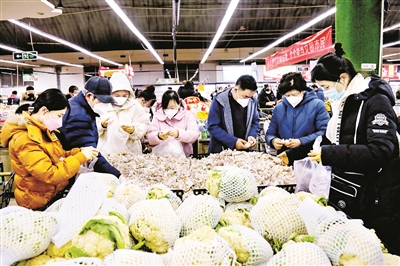 本报讯 12月29日,华龙超市北大街店内,采买年货的市民络绎不绝。蔬菜水果、猪牛鸡肉、杂粮干果……各类商品应有尽有。