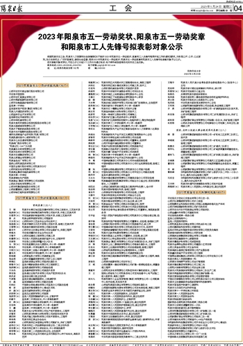 2023年阳泉市五一劳动奖状、阳泉市五一劳动奖章和阳泉市工人先锋号拟表彰对象公示