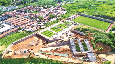 平定县足球训练基地建设项目位于冠山镇河头村,紧临广阳路,交通便利。目前,项目主体工程已完工,正在进行全民健身中心的绿化工程。基地和中心建成后,将更好地满足市民体育活动需求。图为7月16日拍摄的施工现场。刘 胜摄