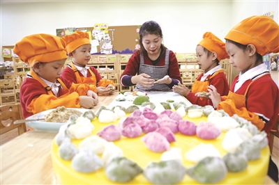11月8日迎来立冬节气。多地幼儿园开展包饺子活动,小朋友在老师的指导下学习包饺子、煮饺子,体验传统民俗文化。新华社发(张 驰摄)