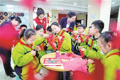 12月27日,晋东一社区新时代文明实践站联合市第十九中学校在辖区山西银行德胜东街支行开展“趣味剪纸庆元旦 亲笔家书感恩情”活动。活动现场,学生们从知、赏、折、画、剪、创、展等七个维度由浅入深了解了剪纸的由来和发展历史,并通过“一剪一纸一双手”,感受民俗文化的魅力。张泽慧摄