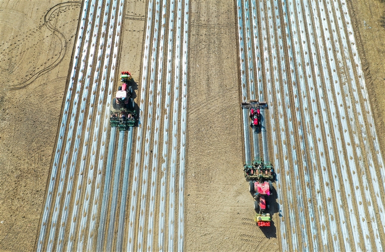 近日,随着气温回升,内蒙古自治区乌兰察布市进入春耕时节。当地农民抢抓农时,驾驶各类农机忙碌在田间地头,一幅春耕画卷在塞上高原徐徐展开。