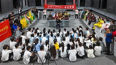 战鼓擂擂、声声呐喊、斗志昂扬。走进“遇见娘子关”演艺剧场,没有传统的舞台和观众席,大家跟随剧情引导,在“城墙”“街道”等空间穿行,观看以平阳公主故事为主线,以娘子关“关”“水”“人家”“村落”等文化历史元素为背景的大型情景剧《遇见娘子关》。表演中,“徐元娘”从一名柔弱女子,在一场场战役中成长为一位巾帼英雄;“把总”面对战友相继战死,英勇顽强,依旧战斗到最后……一个个金戈铁马的场面、感人肺腑的故事,让大家沉浸其中。表演结束后,回到现实中,同学们依旧回味无穷。