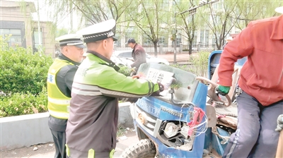 近日,为了进一步规范三轮车交通秩序,中队民辅警到辖区刘家村向村民发放“三轮车载人”事故案例宣传单,普及骑乘三轮摩托车、三轮电动车不戴头盔及驾驶农用三轮车违法载人的危害性。同时,民警加大对平交路口违章停车和七里沟易堵路段大车不按车道行驶违法行为的处罚力度。