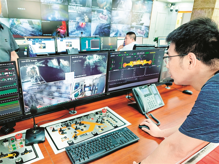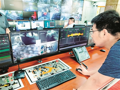 智能化采煤工作面单班减人30%,煤矿单工作面平均月进尺提高8米,智能化人工干预率降低至10%、产量提高2.5%……在山西省霍州市的山西焦煤集团李雅庄煤矿井上控制中心,综采队技术员邢阳阳通过一键启停控制按钮,就能够对井下综采面实现控制。