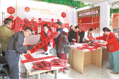 图为1月3日,市书法家协会的会员在城区陶然社区党群服务中心为居民写“福”字和春联。张泽慧摄