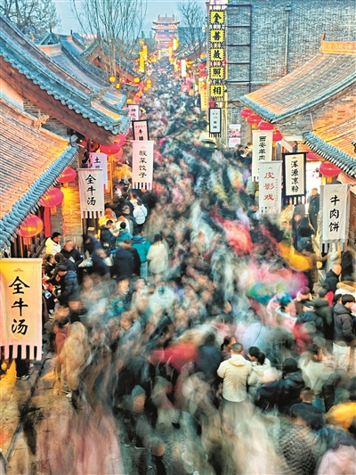 在太原,仿佛穿越回旧时的年节。舞狮、高跷、杂技轮番上演,掌声、欢呼、惊叹此起彼伏。孩子们手里的糖葫芦,大人们脸上满足的笑,映出的是烟火气里的中国年。