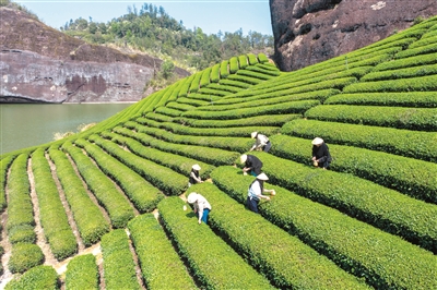 随着春季气温升高,浙江省金华市武义县的12万亩茶园也迎来了春茶采收的忙碌季节,同时也进入了春季旅游的旺季,各地的游客前来感受茶乡特色旅游。新华社记者徐 昱摄