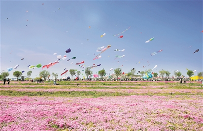 4月19日,第42届潍坊国际风筝会在山东省潍坊市开幕并举行万人风筝放飞活动。新华社记者徐速绘摄