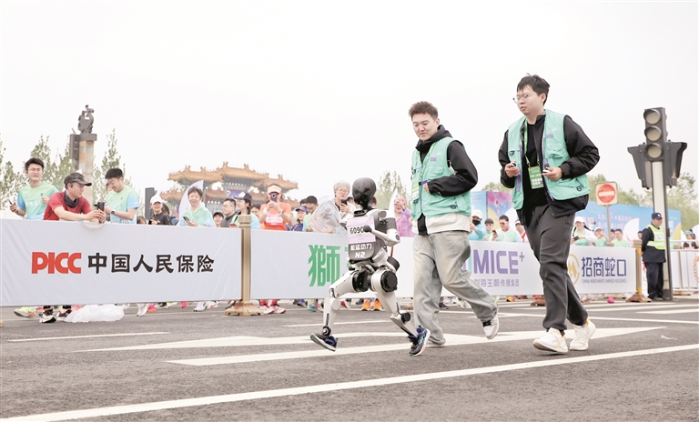新华社北京4月19日电(记者张 骁) 堪称科幻电影大片!19日7时30分,全球首次“人机共跑”半程马拉松在京开跑!这声发令枪响,开创历史。