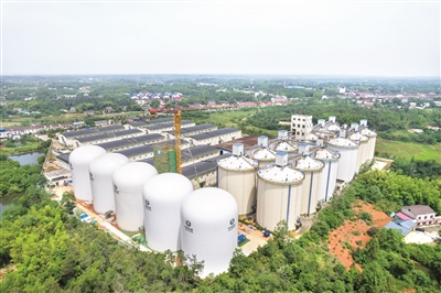 这是5月6日在中储粮长沙直属库拍摄的气膜粮仓建设施工现场(无人机照片)。