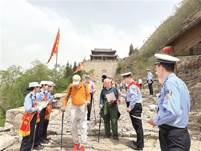 除了维护交通秩序,民警还承担着为游客提供服务的重任。每天都会有大量游客询问停车场位置、游览路线、周边设施等问题,民警始终耐心解答,尽管口干舌燥也毫无怨言。遇到游客遗失物品、老人小孩走失等情况,他们也会积极协助寻找。5月3日,一位游客在景区内不慎丢失身份证,民警通过调取监控、走访周边商户,仅用1小时就帮其找回;同一天,一名儿童与家人走失,民警通过广播寻人、在重点区域排查,最终在景区出口附近找到孩子,让焦急的家长感激不已。