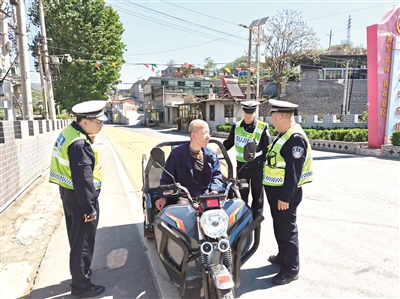 “大叔,您把头盔戴上再走!”4月20日上午,民警在村口拦下一辆未戴头盔的三轮车。驾车的李大叔刚从地里干完活,想着路程近就没戴头盔。民警没有急于处罚,而是从车尾箱取出备用头盔帮他戴上:“您看,这头盔一扣,安全就有了保障。”在日常执勤中,三中队实行“教育为主、处罚为辅”模式,在主要路口设置“流动宣传点”,对违规村民开展“三个一”教育——看一段警示视频、签一份承诺书、当一次临时宣传员。遇到路边停放的三轮车,民警会顺着田埂找到正在劳作的车主,现场讲解载人隐患。