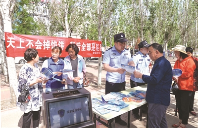 5月19日,高新区宏苑社区联合辖区民警及电信公司,在社区广场开展网络反诈宣传活动。活动旨在提升居民对网络诈骗的防范意识,增强识骗防骗能力,守护好“钱袋子”。张哲远摄