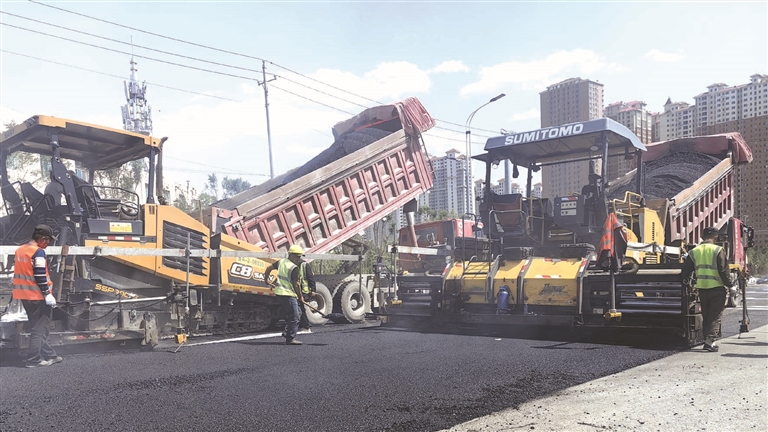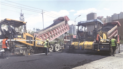 5月18日,阳泉公路分局组织施工队伍,利用大型机械,加班加点对国道二三九线李家庄至平阳街万达路口路面进行沥青路面提标铺筑施工,改善公路通行条件。 冯梦琪摄