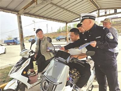 “各位村民,农用车违法载人、酒后驾驶、无牌无证驾驶,这些行为就像埋在路上的‘定时炸弹’,随时可能引发事故,大家一定要自觉抵制。”在农村地区,盂县交警大队充分利用“大喇叭”传播范围广、渗透力强的优势,每天早中晚三个时段定时播放交通安全知识,进一步提升村民的交通安全意识。结合农村赶集、庙会等聚集性活动,民警设立“流动宣传大篷车”,通过播放事故警示片、开展交通安全知识有奖问答,吸引村民主动参与。民警走村入户时,随身携带“交通安全流动展板”,用发生在身边的案例讲解超员、超载等违法行为的危害,并为村民的电动车免费粘贴反光标识。此外,培育“农村劝导员”,定期开展培训后让其深入田间地头、农家院落传递安全知识,让“‘大喇叭’响起来、宣传车动起来、劝导员讲起来”成为农村交通安全宣传的新常态。