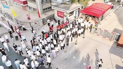 当天上午8时许,记者在阳泉十一中考点看到,考生在考点工作人员的引导下,陆续经过安检程序进入考点,现场秩序井然。老师们站在考点外,为学生们加油鼓劲,叮嘱注意事项,传递温暖与力量。家长则目送孩子进入考点,目光中满是关切与期许。特警、民警等早早来到考点外执勤值守,维护考点及周边区域秩序,其他相关单位部门人员各司其职、各尽其力,努力为考生营造良好的考试环境。