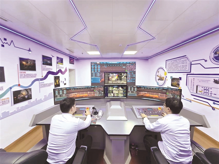 二矿掘进二队职工牛涛坐在干净的智能化掘进机操作间里工作。不同于往日,如今,他不是穿着绒衣绒裤、雨鞋,而是身着白衬衣、系着领带。轻点屏幕,他熟悉地进行一键启停操作,智能化设备立即开始作业。“在地面就能操作井下的设备,真好啊!”牛涛感叹道。