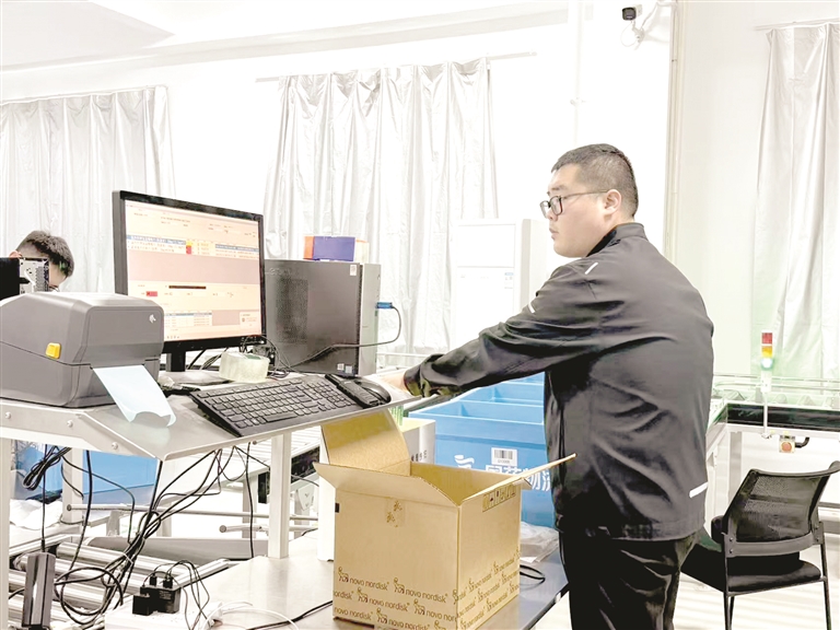 7月9日,国药控股山西阳泉有限公司的多层库房里,全自动传送带高速运转,工作人员正将分拣完毕的药品按配送路线装箱。这些承载着健康使命的包裹,即将发往650余家医疗终端。