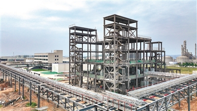 图为9月4日无人机拍摄的建设中的聚砜车间。张哲远摄