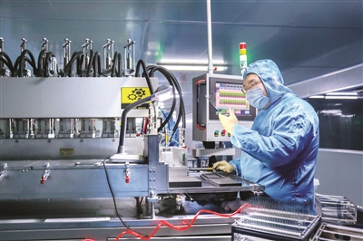 位于郊区苇泊工业园区的汉能精密3D四面曲玻璃盖板生产基地由山西省汉能精密光学科技有限公司投资建设。基地生产的玻璃盖板及玻璃后盖广泛应用于手机、平板电脑、数码相机、电子阅读器等电子产品。自今年8月首批产品交付市场以来,基地产销势头良好,截至目前产值已近2000万元。图为10月23日,工人检查玻璃盖板成品。张泽慧摄
