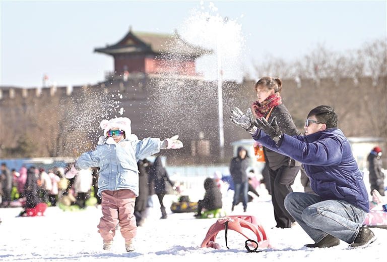 1月11日,游客在石家庄市正定县冰雪嘉年华游玩。近年来,河北省石家庄市通过举办系列精品冰雪赛事、扩面提质冰雪场馆等举措,大力普及推广群众冰雪运动,深度打造集赛事、旅游、休闲、产业于一体的冰雪旅游新格局,助力冰雪经济高质量发展。新华社发(闫志国摄)