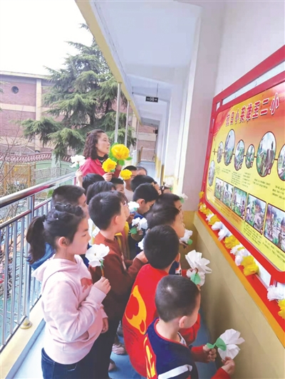 清明节前夕,上站幼儿园大班组老师带着孩子们制作菊花,向英烈画像敬献,表达缅怀之情。
