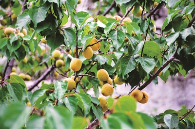 村里有一处依山势修建的三层窑洞。高保义说:“我们利用这一特色,把窑洞的二层和三层打造成了餐厅和民宿。在窑洞附近,我们还种植了杏、桃、梨、苹果等果树,现在已经挂果,可供游客采摘。”