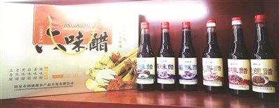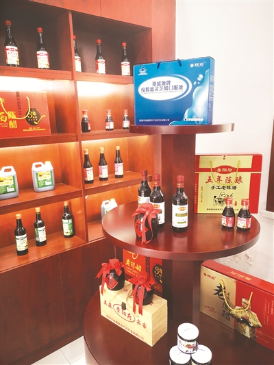 了解了传统手工制醋的过程,游客被刘润昌引到醋产品展示厅。木质展架上,醋、酱油、面酱等“晋阳府”品牌系列产品整齐陈列。除了常见的按年份划分的手工老陈醋,“晋阳府”老醋坊还有姜味醋、蒜味醋、辣味醋、五香醋等风味醋,原汁酱油、鲜味生抽、儿童酱油等酱油,甜面酱、老黑酱等面酱,绞股蓝灵芝醋口服液等。游客现场品尝各类产品,更加深刻地体会到了酿造过程的艰辛。