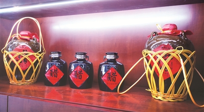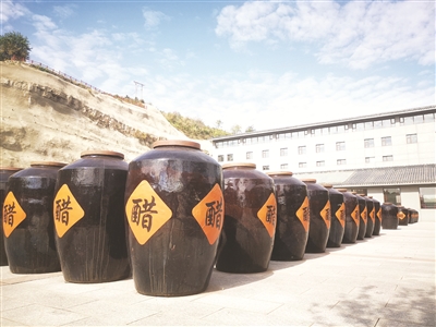 市裕盛源农产品开发有限公司厂区内,醋元素随处可见。厂区入口的门卫室,是一个巨大的醋瓶造型,给人以强烈的视觉冲击。古色古香的“晋阳府”老窖、妙趣横生的醋文化展示墙绘、整齐排列的数百口晒醋大缸,让人眼前一亮。制醋手工坊飘出的醋香味,让人迫不及待地想去了解美味背后的故事。