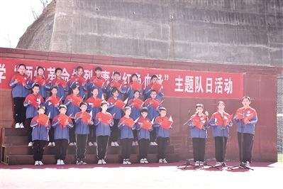 在五星红旗下,全体少先队员庄严地立下誓言。“学习先烈思想,继承先烈遗志,发扬先辈精神,做一名优秀的少先队员,是我们矢志不渝的选择……”少先队员们铿锵有力的誓言回荡在校园上空。