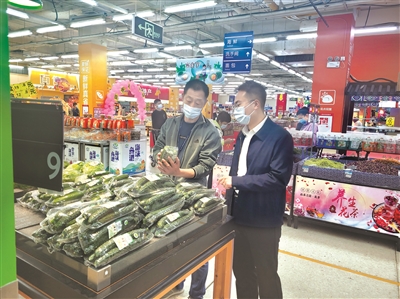 胡小洁和同事们来到水果、蔬菜、粮油、肉制品等销售区域,逐一检查了食品经营者冷链食品储存、进货查验、索证索票等食品安全工作落实情况,并叮嘱市场负责人,食品安全是农贸市场必须履行的主体责任,要保证食品来源正规可追溯,保证食品质量。“疫情就是命令,防控就是责任。关键时候我们更应该带头冲到一线,把市场监管工作做实做细,为疫情防控提供有力支撑。”胡小洁说。