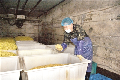 既有市场优势,又有水源优势,高有根说干就干。建厂房、选设备、挑豆子、找技工……为了把豆芽产业发展起来,高有根着实下了一番功夫。“隔行如隔山。本以为家家户户都会发的豆芽没啥难度,真正做起来才发现规模生产豆芽并非易事。”高有根说,“就拿选材来说,起初我们觉得是黄豆就行。为了带动附近村子的发展,我们就从周边农户手里收购黄豆。可是这些黄豆的出芽率不高,发出来的豆芽也很短。经过多次尝试,我们才选定个头匀称、颜色正、出芽率高的东北优质大豆。”