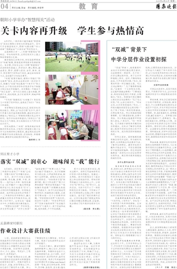 通过作业设计大赛,为教师提升作业设计质量、设计科学有效的作业、优化和提高作业品质指明了方向,明确了方法,为在今后的教学实践中切实运用新的作业设计理念,引领广大教师更加规范、科学、有效地进行作业设计起到了积极的推动作用。(路家村联校供稿)