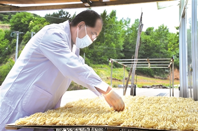 忙完手头的营生,武爱军便接到一个老顾客购买擀面的电话,“仙人乡交口村有人要十几袋擀面,翻晒完就得把今天的擀面装袋”。这几年,在武爱军的精心经营下,他的擀面不仅村里人爱买,周边乡镇的顾客也会打电话订购。“现在,我每天能制作大约30斤擀面,这些擀面基本当天就能销售完。遇上有人预订,我还要加班多做一些。这样下来,销售擀面一年能挣4万多元。”武爱军说。