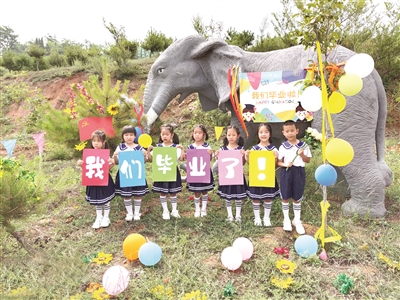 戴状元帽、拜谢恩师、过状元门、朱砂点智、开笔启智……7月1日,郊区下白泉幼儿园在猫眼山为孩子们举办了一场特别的毕业典礼。冯雪芹摄