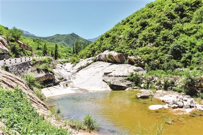 石家塔村是我国第五批“中国传统村落”之一,森林茂密,自然生态环境良好。石家塔河穿村而过,村里组织村民修筑河坝,建起仿古桥、凉亭,打造出一处小游园。石家塔河下游水量丰沛,流水将河床上的岩石冲刷出一个个坑形成了小水潭,被当地人称为“九龙池”。村里山多、石头也多,天然崖和峡谷随处可见,石桥、石房、石磨、石碾等石头景观令人称奇。