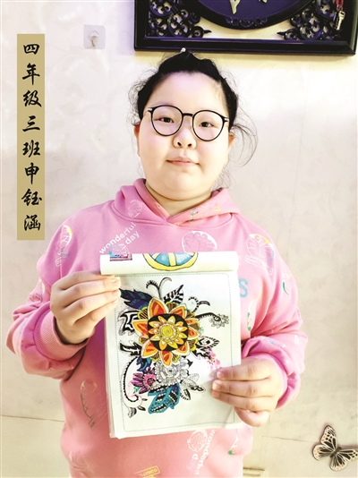 在“云端”的每一节美术课上,庞稚麟和学生们一起感受美、理解美、创造美。课后,学生们交回了120多幅作品,有临摹、有改编、有创作。分层作业的模式已经被孩子们熟悉并掌握。每个孩子选择了最适合自己的作业要求,在能力范围内做到最好的自己。有的学生开心地展示自己修改好的作品,拍下照片发给老师看。庞稚麟欣慰地说:“徜徉在由孩子们创造的艺术海洋里,我的心情如花一样盛开。”(郭宙)