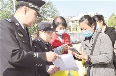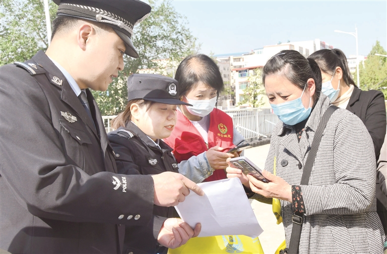 近日,城区后底沟社区联合北大街派出所开展防诈骗知识宣传活动。社区网格员和民警通过分发宣传材料、现场讲解等形式宣传各类安全防范知识,切实提高居民防诈骗意识。晋向华摄