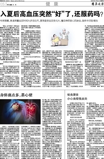 ~~~专家提醒,患者测量血压时间大多在白天,夏季昼夜血压变化大,擅自停药致心肌缺血、脑卒中风险增加