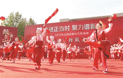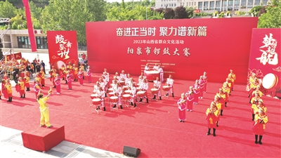 6月3日,2023年阳泉市锣鼓大赛在郊区政府广场举行,15支锣鼓代表队同台竞技。经过激烈角逐,郊区河底镇程庄雄鹰鼓乐团表演的《欢庆铙钹》、盂县秀水镇东关南村锣鼓队表演的《威风锣鼓》获一等奖。张哲远摄