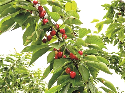 占地约11亩的樱桃种植基地共种植着500棵樱桃树。“樱桃品种为红玛瑙。”窦华荣介绍,“5月中旬,基地的樱桃就陆续成熟了,采摘能一直持续到6月底。”